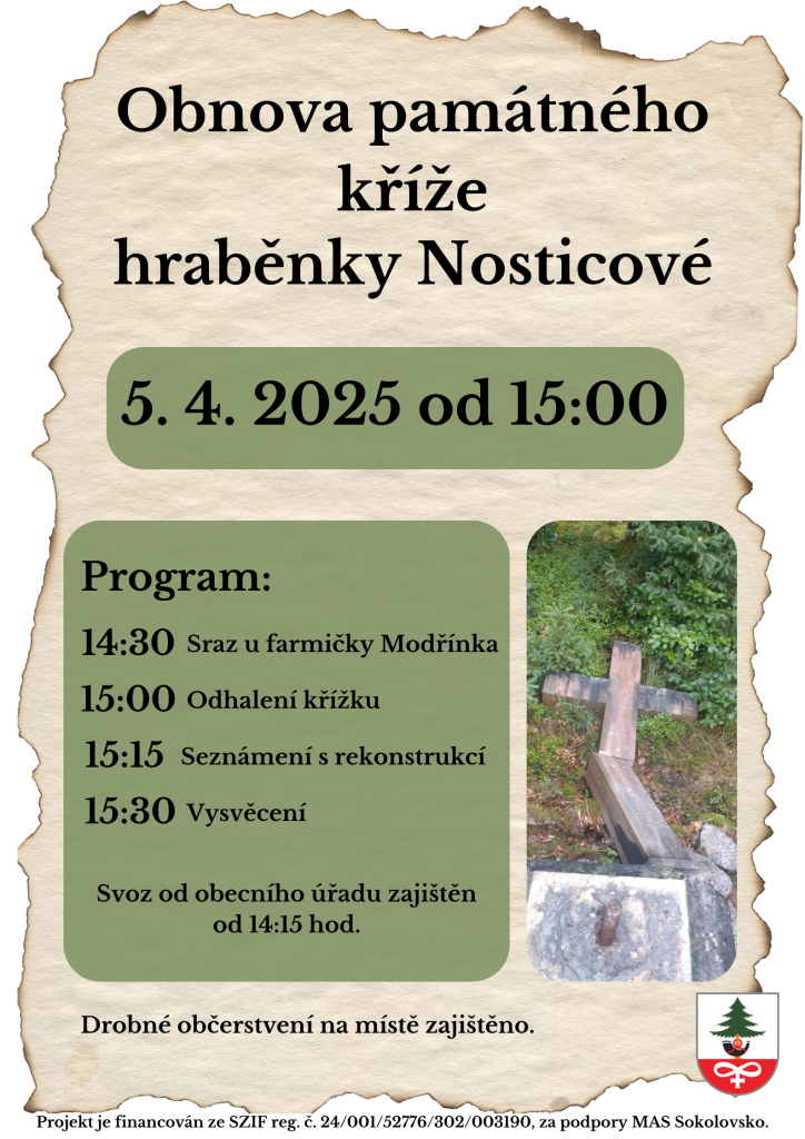 Obnova památného kříže hraběnky Nosticové 5.4.2025 od 15:00 hodin.